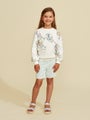 Mainion SS22 kevät-kesämalliston pehmeät, froteiset shortsit, joissa joustava vyötärö kiristysmahdollisuudella.