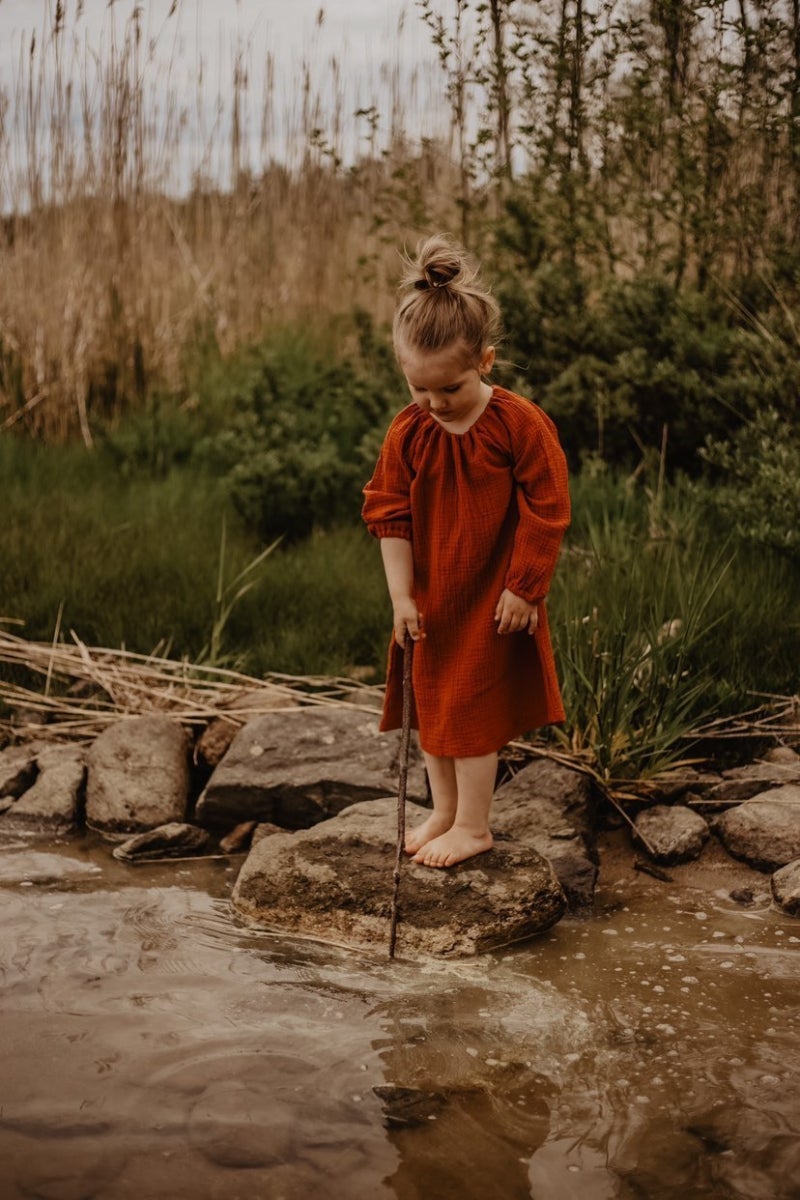 Lumo mekko on yksinkertaisen kaunis, kevyt vaate perheen pienimmille. Mekkoa voi käyttää sellaisenaan tai yhdistää muihin vaatteisiin. Se on kepeä käyttää ja on mukavan pehmoisen tuntuinen iholla. Tuplakokojen ja oversize mallin ansioista mekko menee käytössä pitkään.