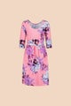 Naisten mekko istuu kauniisti rinnasta ja vyötäröstä, ja sen väljä helma viimeistelee klassisen siluetin. Mekossa on ¾-mittaiset hihat, ja selän puolta koristaa avarrettu pääntie. Helman pituus on noin polvimittainen.