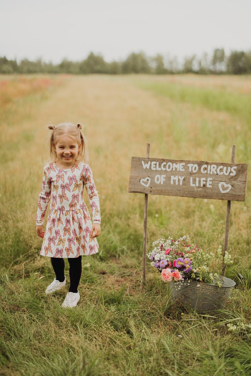 Spring Dance Rib -mekko on ihastuttava lasten pitkähihainen mekko, jossa yhdistyvät erinomainen istuvuus ja kaunis kuosi.