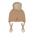 Pipo on valmistettu 100% luomupuuvillasta, joka on materiaalina hengittävä, pehmoinen ja miellyttävän tuntuinen ihoa vasten. Pipossa on yksi langoilla kiinnitetty tekoturkistupsu ja tuulensuojat korvien kohdalla neuloksen sisällä pitävät huolen, että pipo on erinomainen tuulisella säällä.