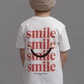 Hieno t-paita isolla Smile selkäpainatuksella.